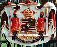 Coat of Arms of the Hawaiian Kingdom, ʻIolani palace, Honolulu, Hawaiʻi, © CC BY-SA Thomas Tunsch / Hawaii Kingdom COA.jpg (Wikimedia Commons).