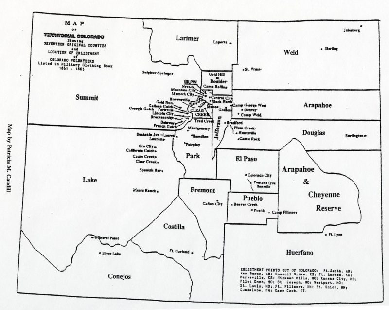 Arapahoe, Boulder, Clear Creek, Conejos, Costilla, Douglas, El Paso, Fremont, Gilpin, Huerfano, Jefferson, Lake, Larimer, Park, Pueblo, Summit, Weld.
